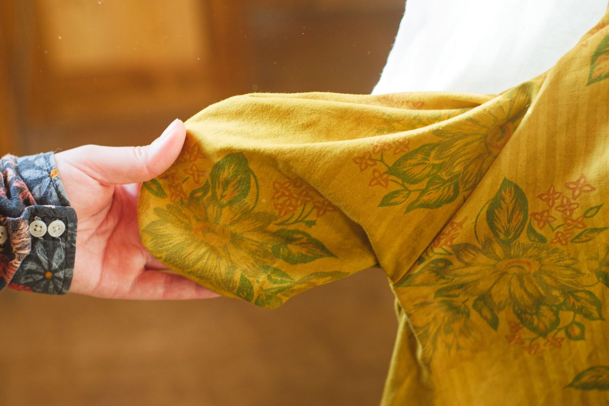 Le tissu utilisé est un ancien drap, sélectionné patiemment pour ses motifs et sa qualité. Les couleurs sont douces, originales, durable et s’accordent facilement.